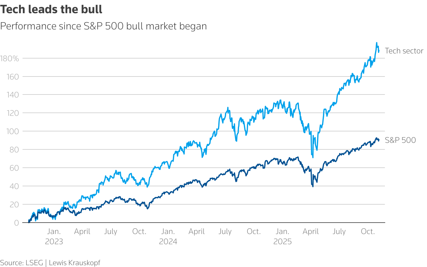 Through all of this melee, the US stock exchange has persisted. It is up nearly 10% this year. But all of that evaporates very quickly when you take the AI trades out of it.